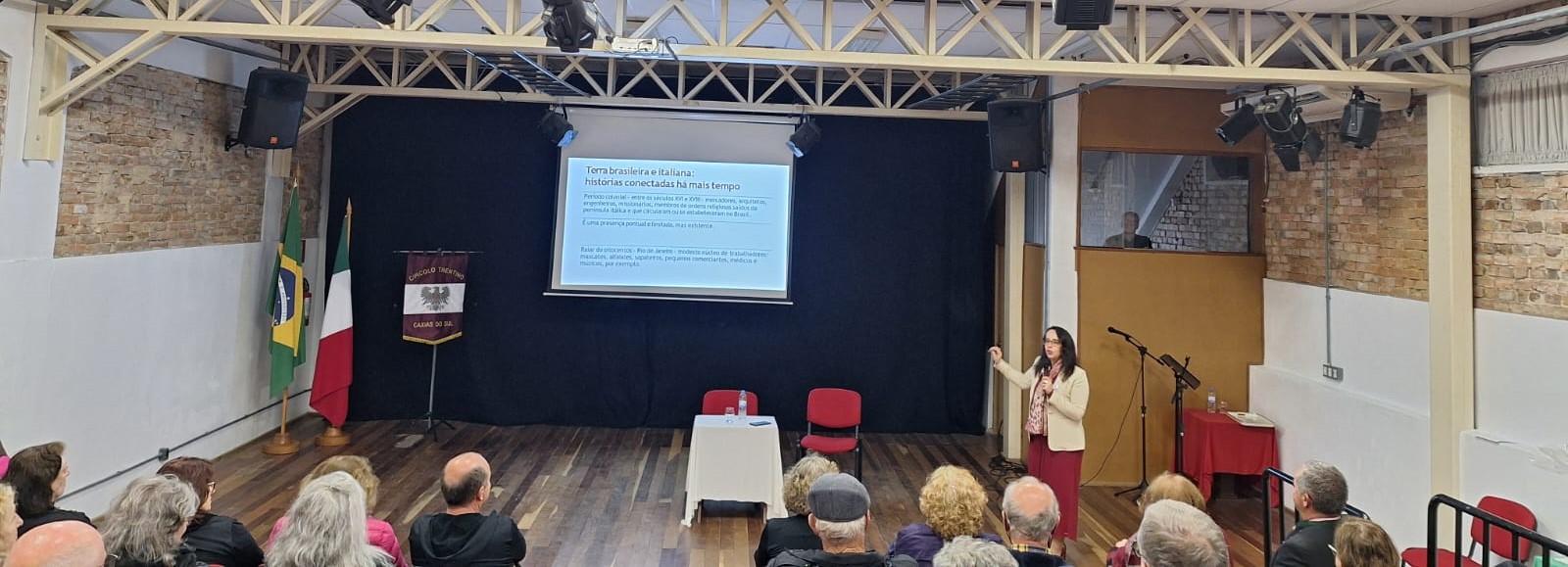 Em seguida, a escritora, pesquisadora e doutorada a sra.Terciane Luchese apresenteou o painel, com o tema: Os 150 anos da imigração italiana no RS e seus aspectos.